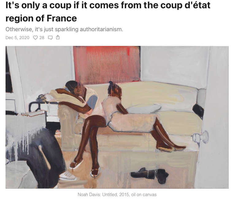 Make your 2021 more/less list. Feel seen when The New Yorker has called your newsletter “bossy and self-deprecating.”Wonder if there’s a way to tactfully post a potato soup recipe in the middle of an insurrection? Don’t let the week’s embarrassingly blatant and horrific display of white supremacy distract you from the fact that Georgia elected two new senators yesterday (including Raphael Warnock, the state’s first Black senator). PHONE BANKING WORKS, DONATIONS WORK, HARD WORK WORKS! Thank Stacey Abrams in your nightly rounds. Take a breath and let yourself ease into the year, it’s a marathon, not a sprint, etc. Admit to yourself that some of your plants just aren’t going to make it, replace them with new plants that you will try your best not to kill. Listen to POOG, Kate Berlant and Jacqueline Novak’s wellness podcast, laugh forever. Help your friend outfit his kitchen when you discover he does not own a single mixing bowl, feel inspired to make an EVERYTHING YOUR KITCHEN NEEDS (and a few things it doesn’t) post. Stay tuned for that one in next week’s inbox.