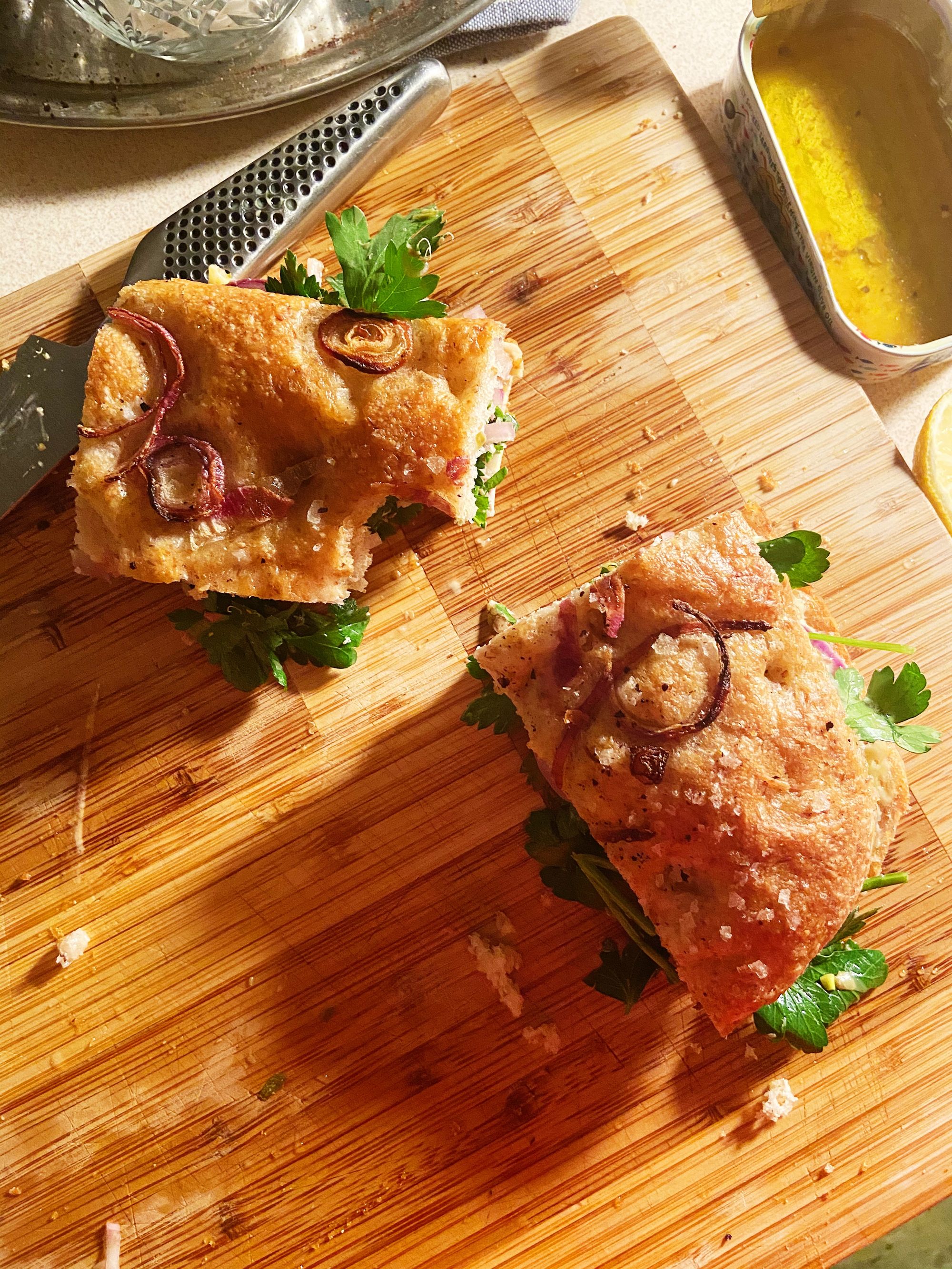 Ever go to Saltie in Williamsburg and order a Captain’s Daughter and eat it in the window and then order another one just to eat at home so you never have to not be eating that sandwich? Yeah, I did that a lot circa 2013. We were, as a household, collectively missing New York, but more specifically Saltie and more specifically, The Captain’s Daughter. It’s a sandwich made from sardines, pickled onions, sliced radishes, a delicately set egg, a pile of seasoned parsley, and a smear of aioli (I think).