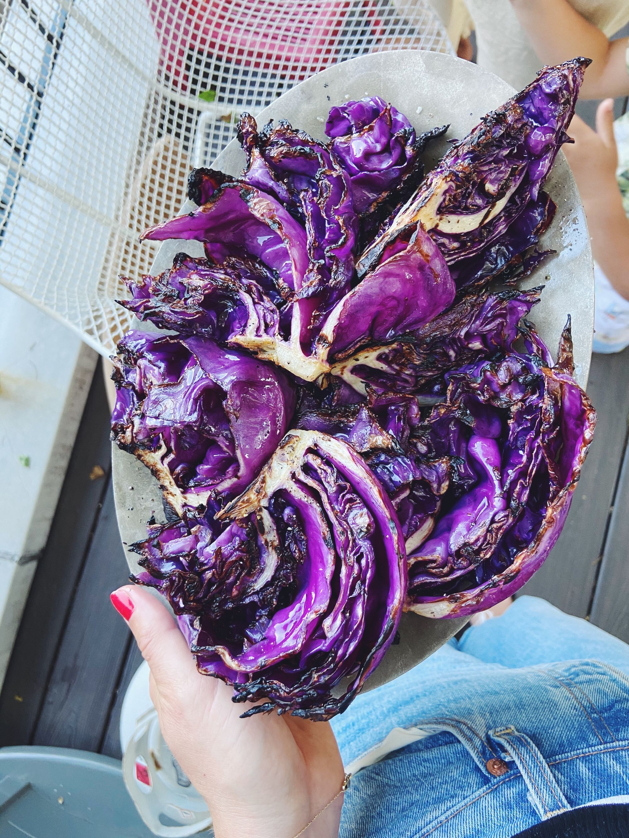 Last week, I was blessed with the opportunity to use my downstairs neighbor’s grill (thank you neighbors!). I climbed awkwardly out of my window not meant to be climbed out of and lowered myself down the fire escape to the backyard with absolutely zero grace, determined to make use of this opportunity and grill every single thing I could (I’m a big fan of “if you can grill it, you should probably grill it,” cabbage being one of the best cases for that argument). So, reader, I did grill the cabbage. It got charred but not burnt, tender but not mushy.