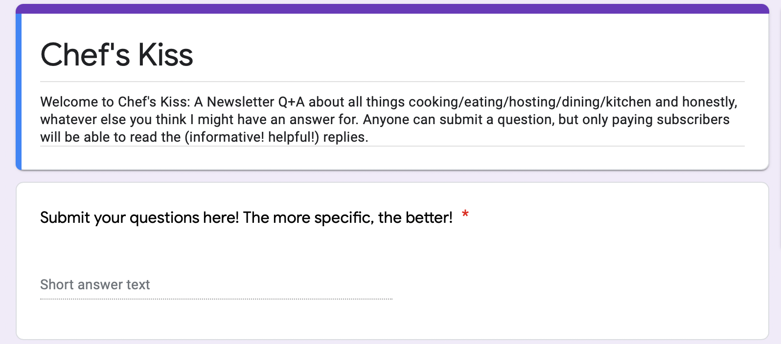 Beginning next week, I will be starting a new bi-weekly column for paid subscribers on this here newsletter called Chef’s Kiss. A place for recommendations, opinions, advice, questions and answers.