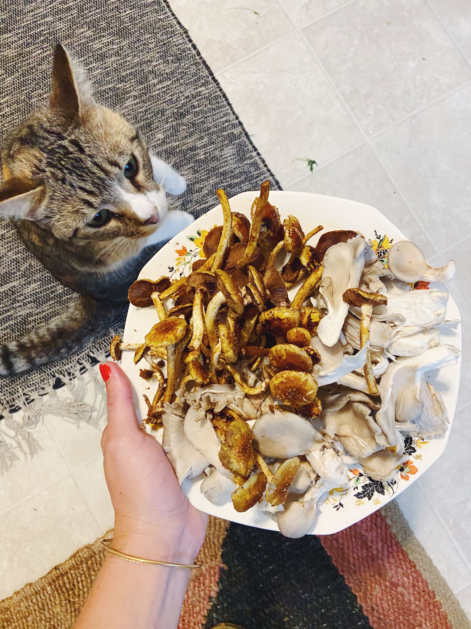 You can follow this same technique with chicken thighs, or another vegetable like quartered radishes, torn kale or snap/snow peas, but mushrooms crisped in pork fat and seasoned with vinegar are especially special. As always, feel free to uh, you know…pivot.