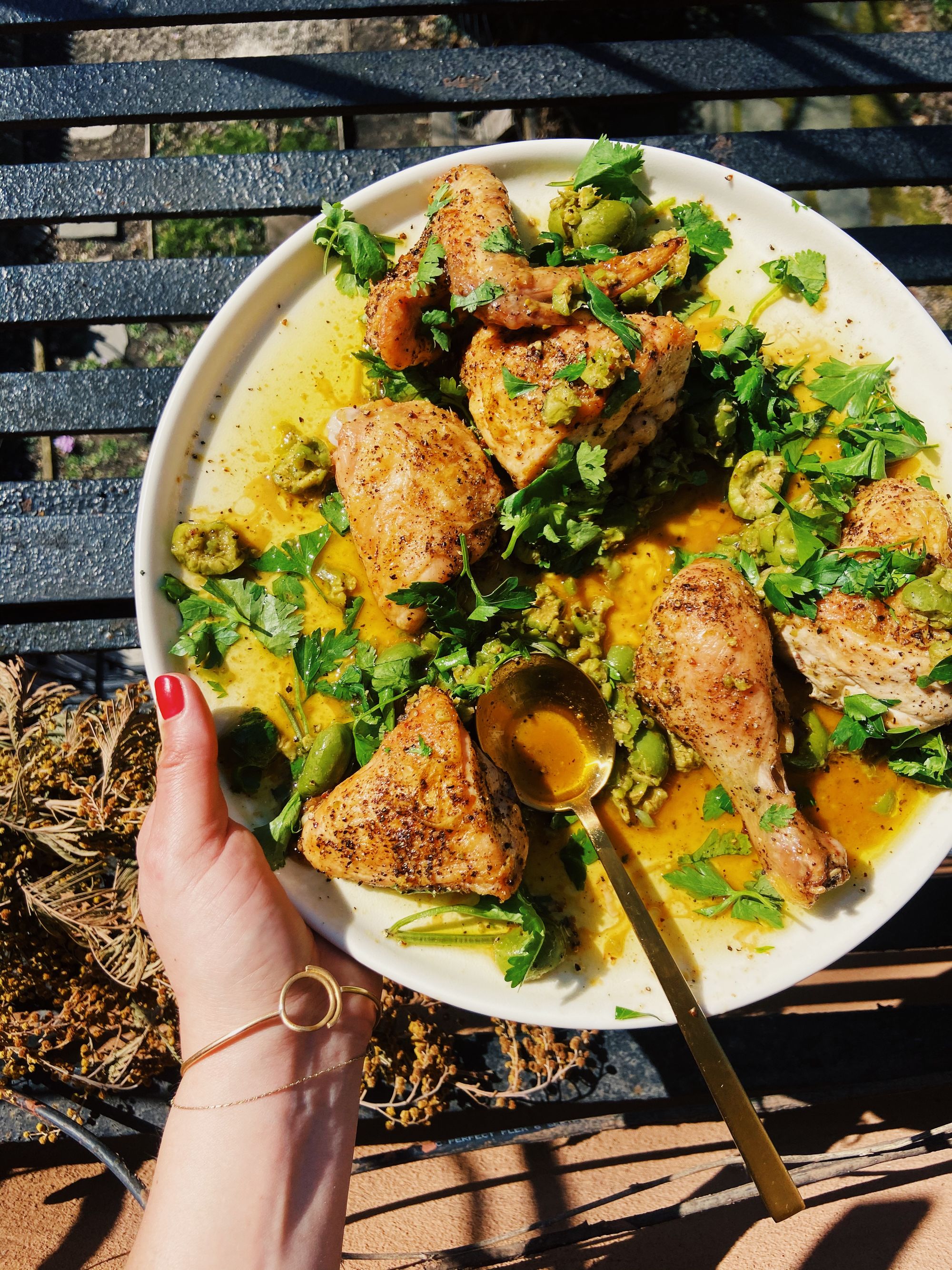 If you don’t like olives, I am shocked you’ve read this far. But truly, they are as important as the chicken here and make up the lion’s share of the actual sauce. THAT SAID! You could simply only use the herbs here (parsley, cilantro, a mix), or take a number of quick-cooking/already cooked vegetables and use them to make this sauce, too. Thinly sliced fennel, boiled and crushed potatoes, capers, fresh cherry tomatoes all come to mind.