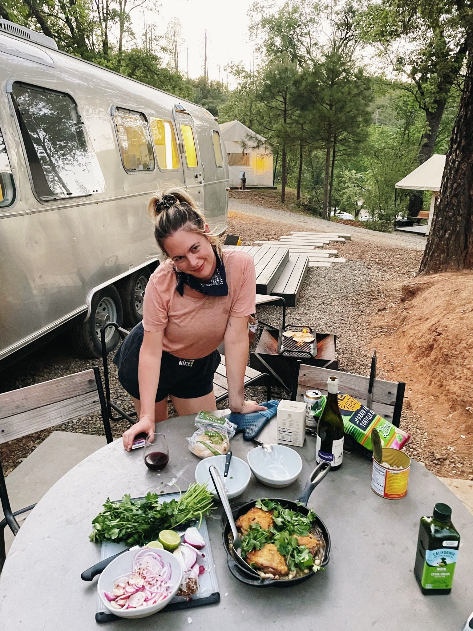 DISCLAIMER: This most recent camping adventure was decidedly more of a glamp (there was an airstream with a small fridge, a shower and solid wifi), but yes I have been REAL camping before, and cooking over a campfire is cooking over a campfire, so save it!